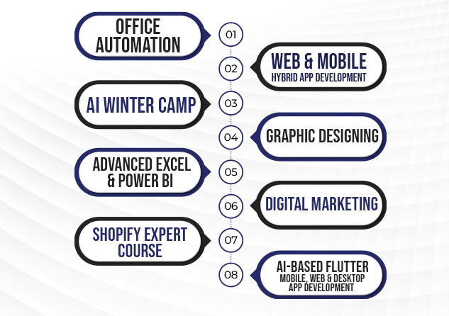 Immerse yourself in the art of graphic designing, mastering the skills needed to bring your visions to life. Delve into the world of CMS development, as we guide you through cutting-edge technologies to craft powerful and dynamic websites. Explore our facility to learn more about the best short courses in Karachi, and gauge our powerful computers that enable seamless designing and web development. Reach out today for more information regarding our IT courses in Karachi fees.
